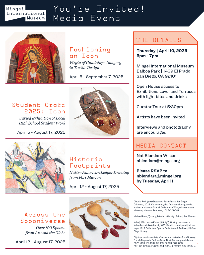 Mingei has a solid brand kit and clearly defined guidelines. With final approval from the museum’s graphic designer, Elizabeth Martinez, I developed these templates for social media and press events.